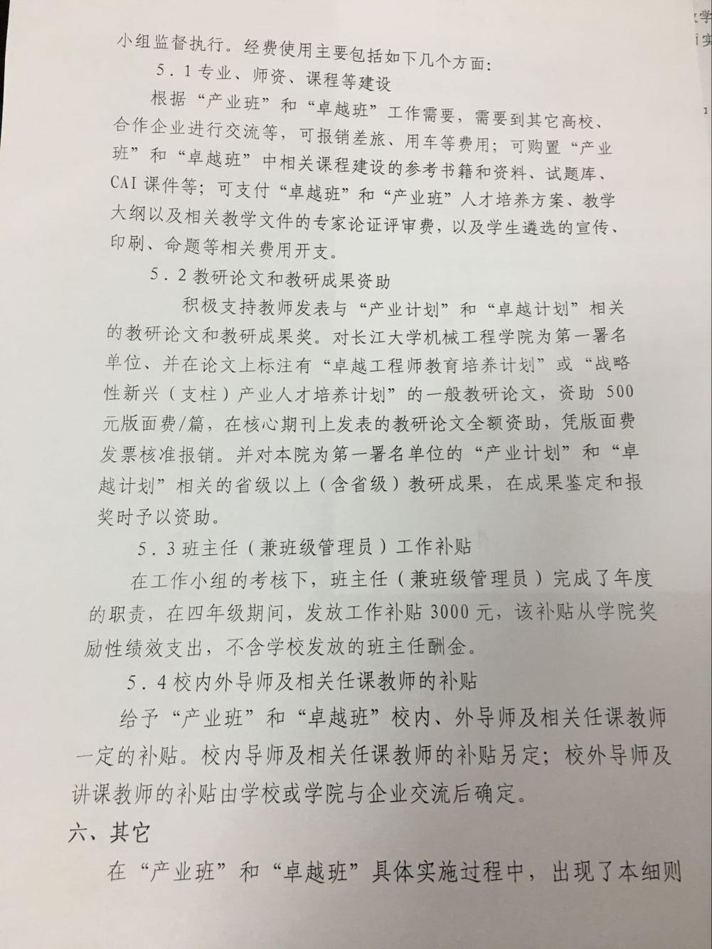 关于印发机械“产业班”和“卓越班”培养工作细则(修订)的通知