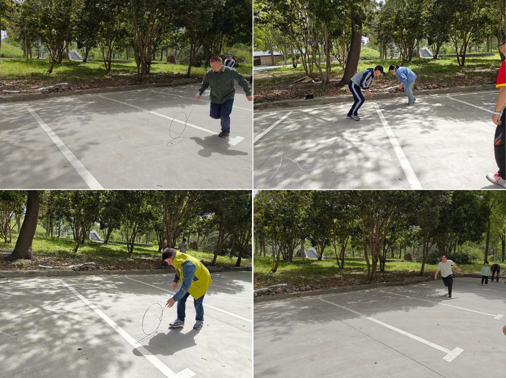 滚铁环项目瞬间点燃了大家的童年记忆。每队4人接力,在20米长的赛道上推动铁环竞速。铁环时而听话地滚动,时而调皮地歪倒,选手们手忙脚乱的样子引发了阵阵欢笑。