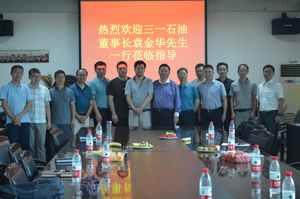 2019年7月25日,“三一”集团来公司开展技术交流。参加交流会的有“三一”集团有限公司董事、“三一”石油装备有限公司董事长袁金华、“三一”石油装备事业部副总经理王安伟、校资产经营管理有限责任公司总经理王凌华、必威西汉姆官网平台经理管锋、副经理李美求、吕志鹏及易先中、郭登明等教授。