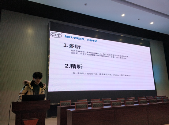 报告会上,三名员工分别交流2019年暑假短期游学墨西哥理工大学的收获与体会。杨一骐从游学概况、校园环境、学习感受、生活体验和游学收获五个方面为同学们讲解他们此次游学的所见所闻。刘煜给大家讲解了他们游学时的课程设置及上课方式,石油、地质、英语是他们此次游学主要学习的科目,并强调课堂分享和交流非常重要。王恒谦带来的分享则更加侧重于日常的娱乐活动,如打高尔夫、开泳池派对、看棒球比赛、狂欢购物等,通过一张张图片为同学们呈现了游学期间的快乐时光。报告会最后,王恒谦还给同学们分享了自己英语四级考试的经验及英语学习方法。“听力要多听,阅读要多做,时刻保持听力在线,语感和手感在线”,王恒谦总结。