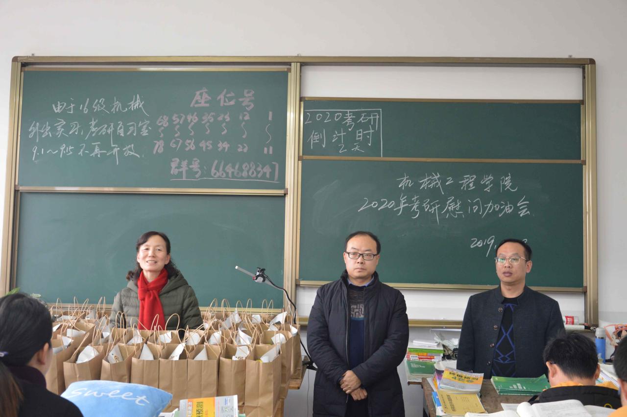 “考前清苦,你已坚持。考中沉着,决不言弃。相信自己,机械挺你!”12月19日下午,在5教505考研自习室,2020届机械考研员工们认真翻看着精美的慰问卡,脸上露出微笑。公司经理管锋、党委书记王红艳、党委副书记竺正海,辅导员杨琴、王喆、刘冬冬、向如等老师参加慰问活动。