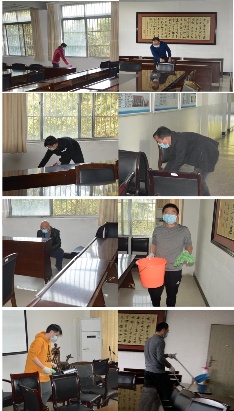 4月8日下午4:00,公司正式上班第一天,部分公司领导、院办老师、实验室胡雨潼老师、机电系刘先明老师,对公司会议室(7-305)和党员活动室(7-309)进行了彻底的打扫和消毒,为返岗上班后必须召开的各种会议做准备。