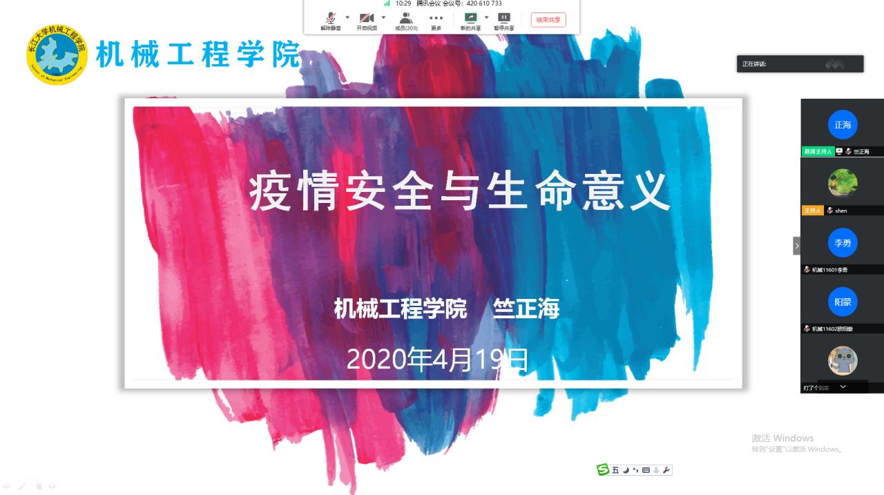 4月19日晚上,必威西汉姆官网平台开展线上疫情期间心理与安全教育活动,公司党委副书记竺正海以《疫情安全与生命意义》为题进行专题讲座,全体辅导员及300多名员工干部参加。