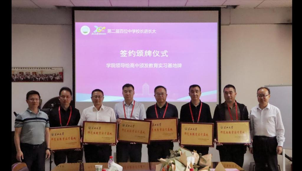 经理管锋、副经理李美求和副经理吕志鹏、张云华分别为6所高中颁发“必威西汉姆官网平台师范生教育实习基地”“必威西汉姆官网平台本科生培育奖”牌匾。