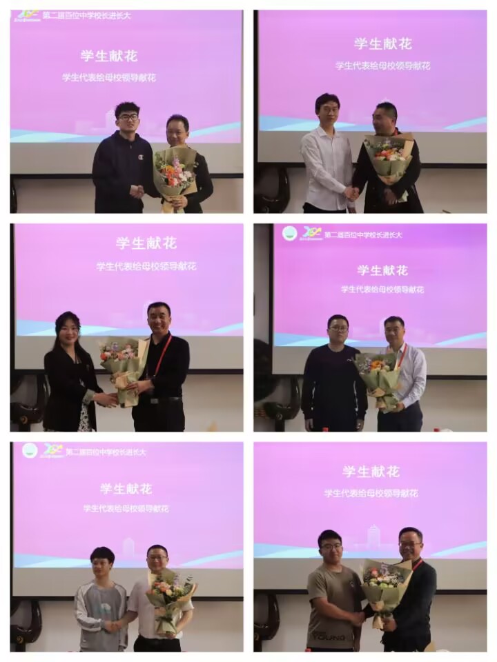 毕业于松滋一中的杨卓燃作为员工代表发言。她感谢母校的精心培养和教育,正是扎实的知识功底为大学的学习奠定了坚实的基础。作为一名机械员工,学习勤奋刻苦,积极参加各类校园活动和志愿服务,在创新创业中不断完善自我。作为一名中共预备党员,时刻发挥先锋模范作用,用自己的奉献去带动和影响更多同学进步。动力工程QX221李书航等6名机械公司员工为母校董事长献上鲜花。