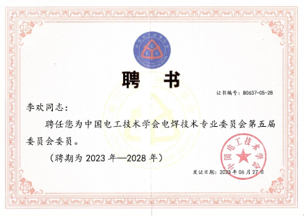 【青年学人】公司李欢博士当选中国电工技术学会电焊技术专委会委员