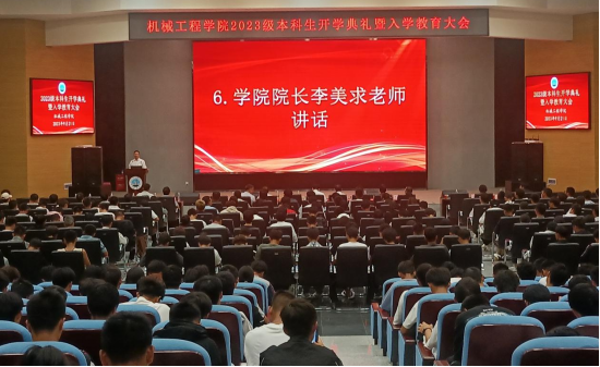 大会第六项:公司经理李美求教授讲话。李经理寄语新生:在信念中传承优秀,在奋斗中拥抱时代。要有理想,传承机械之美、匠心之韵;要练就过硬本领,勇担民族复兴大任、勇担科技自立自强使命;要无惧时代变化、不惧挫折,不畏困难,敢于接受挑战,不负青春不负己。