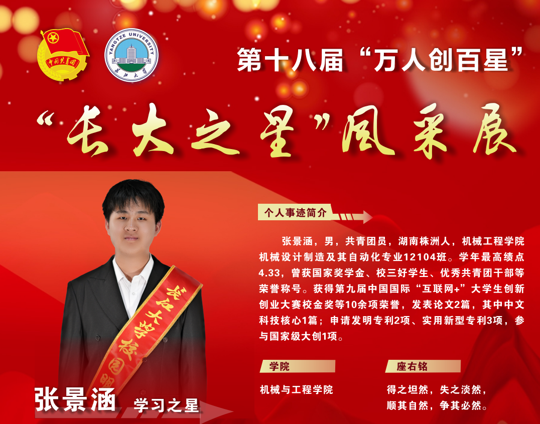 机械12104班 学习之星 张景涵