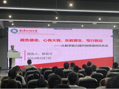 2024年6月1日下午2:30在16教A区313报告厅公司与本科生院联合举办了主题为“从教学能力提升到师德师风养成”的报告会,本次会议由吕志鹏副经理主持,会议特邀武汉科技大学曾良才教授主讲,公司全体教师和其他公司相关教师,共同聆听了曾教授的精彩报告。