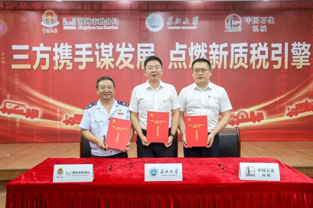 公司副经理、教工第一党支部书记刘先明、石化机械四机公司行政党支部书记安绍敏、国家税务总局荆州市税务局所得税科党支部书记肖逸代表三方签订支部共建协议书。通过党建共建平台,围绕“政治共强、思想共振、组织共建、文化共促、发展共谋”的主旨,以教育基地实践学、搭建平台交流学、支部集中深入学等多元方式,探索党建共建新实践,将党的先进性、纯洁性转化为推动政、企、校合作的强大动力,以高质量党建引领保障高质量发展。