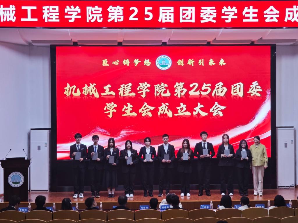 团委书记吴钐宣读新一届员工会聘任文件,明确了第25届团委员工会组织架构。随后,24届团委员工会主席王灿炜25届团委员工会主席李佳文进行共青团团旗交接。杨德强、丁明霞、代荣荣、吴钐几位老师分别为主席团、部长及副部长们授牌赠书,新一届员工会主席团、部长及副部长接过聘书与书籍,正式履职。