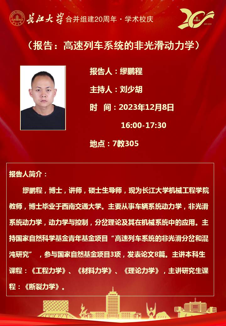 报告简介:随着高速列车的快速发展,高速车辆系统所处的动态环境更加复杂,由此而引发的车辆系统动力学问题也更加严重。非光滑因素的存在对高速列车系统动力学有重要影响,本次报告主要讨论了不同非光滑因素对高速列车系统动力学的影响。