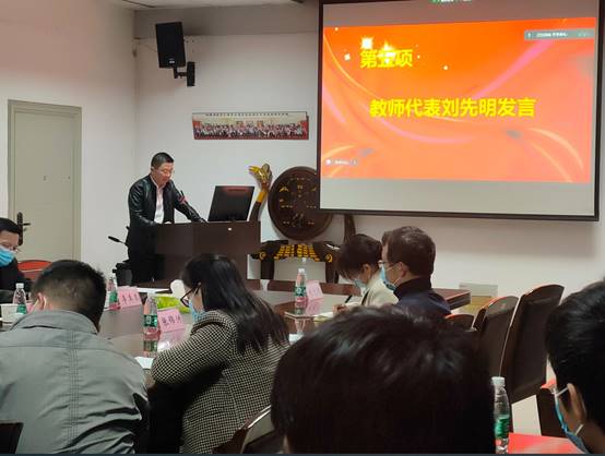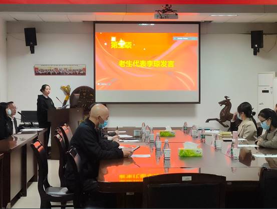 教师代表刘先明分享求学经历和工作经验,他勉励同学们,老员工活是美好而充实的,要热爱机械专业,用青春的奋斗书写奋斗的青春,理想和希望从机械公司起航。