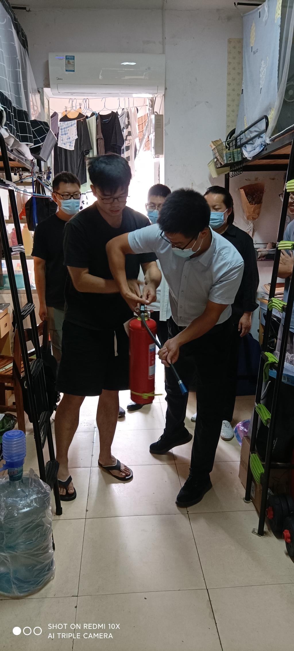 此外,辅导员刘冬冬老师现场向同学们演示了灭火器的实际操作方法,对同学们进行了消防设施的使用培训,并对部分寝室存在的火灾隐患进行了指正。