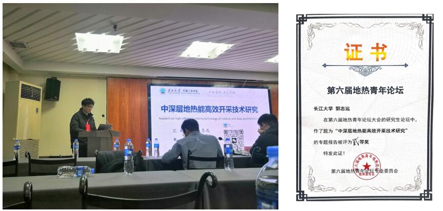 会上,公司2022级硕士研究生郭志远作了题为“中深层地热能高效开采技术研究”的分会场学术报告,并对中深层地热能高效开采研究做了展望,研究内容得到专家学者的关注。报告被评为二等奖。