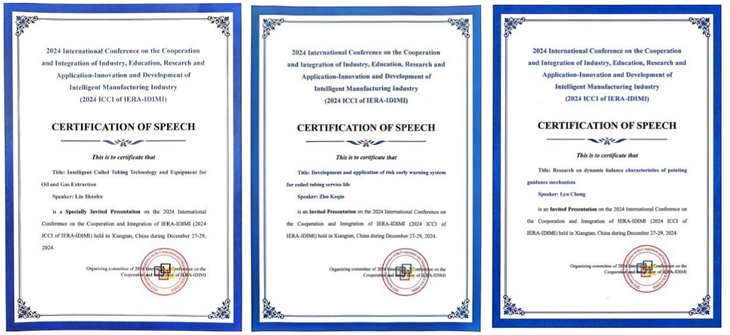 (通讯员 王俊)“2024年国际产学研用合作会议”于2024年12月27~29日在湖南省湘潭市召开,公司刘少胡教授和吕程、朱克勤博士研究生参加会议。刘少胡教授作了题为“Intelligentcoiledtubingtechnology andequipment foroil andgasextraction”特邀报告,2023级博士研究生吕程作了题为“Research on dyamic balancecharacteristics pointing guidance mechanism”分会场报告,2024级博士研究生朱克勤作了题为“Development and application of risk early warning system for coiled tubing service life”分会场报告,报告内容受到与会专家学者的广泛关注。