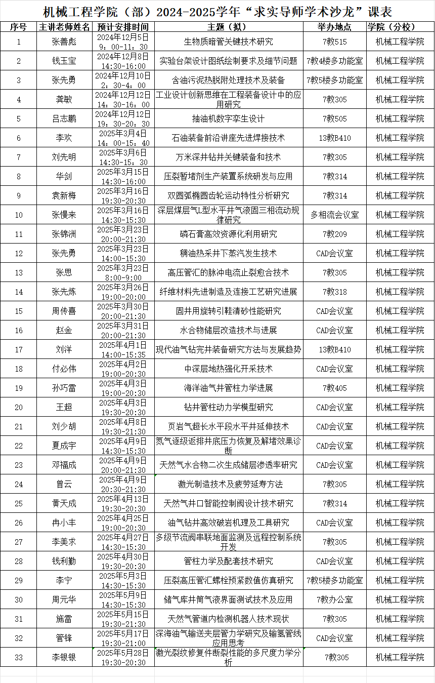 必威西汉姆官网平台(部)2024-2025学年“求实导师学术沙龙”课表.xlsx