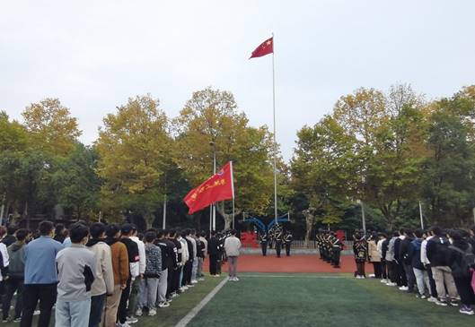 早晨7时,伴着国旗护卫队的铿铿脚步声,在场的每一个人向国旗行注目礼,随着五星红旗冉冉升起,全体师生高唱中华人民共和国国歌,表达对祖国无限的热爱。