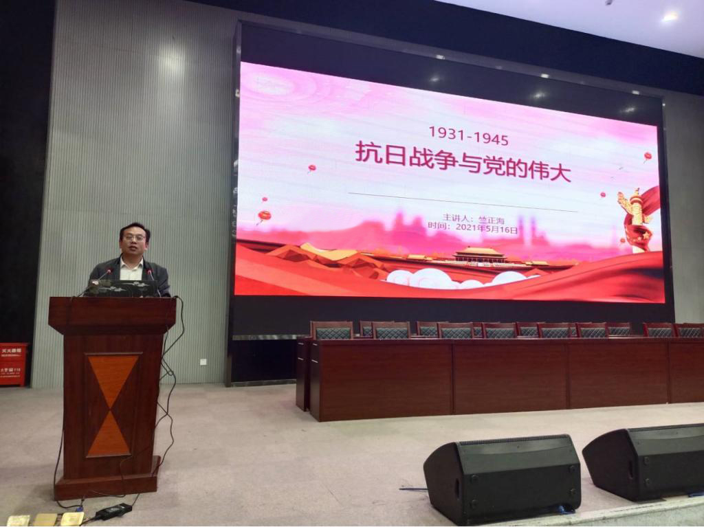 公司党委副书记竺正海以《抗日战争与党的伟大》为题,宣讲中国共产党抗日战争历史。通过“宣誓书”“决心书”和“明志书”讲述党员信仰的坚定。抗日战争中党组织发挥了中流砥柱的作用,如长征胜利、平型关大捷、百团大战等。同时,抗战逐步确立了毛泽东思想的指导地位,对中国革命胜利作出巨大贡献。