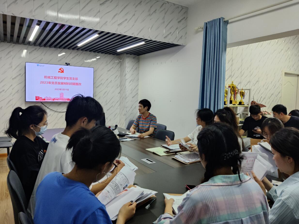 最后,辅导员代荣荣组织全体支委成员开展2023年党员发展材料问题整改工作。