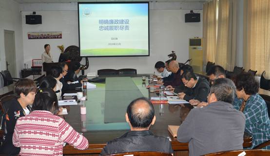 11月4日上午,公司党委中心组在7#305室开展第十次集中研学会扩大会议,本次活动的主题是明确和落实廉政建设责任,院领导班子、科级干部、全体管理人员参加了会议。党委书记王红艳主持会议。