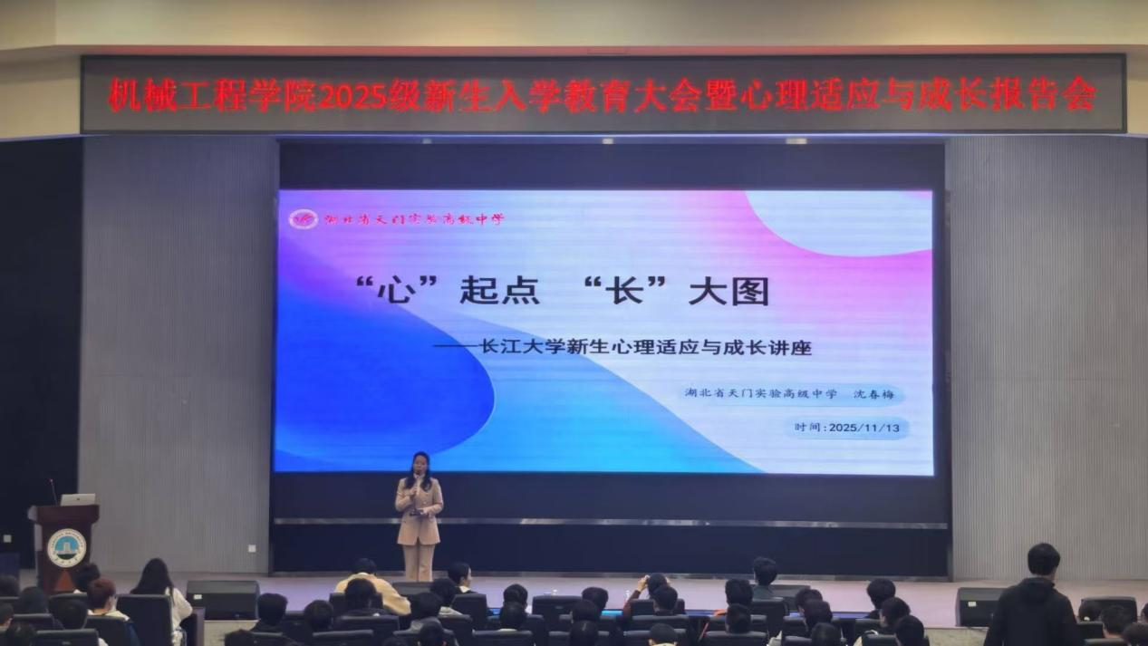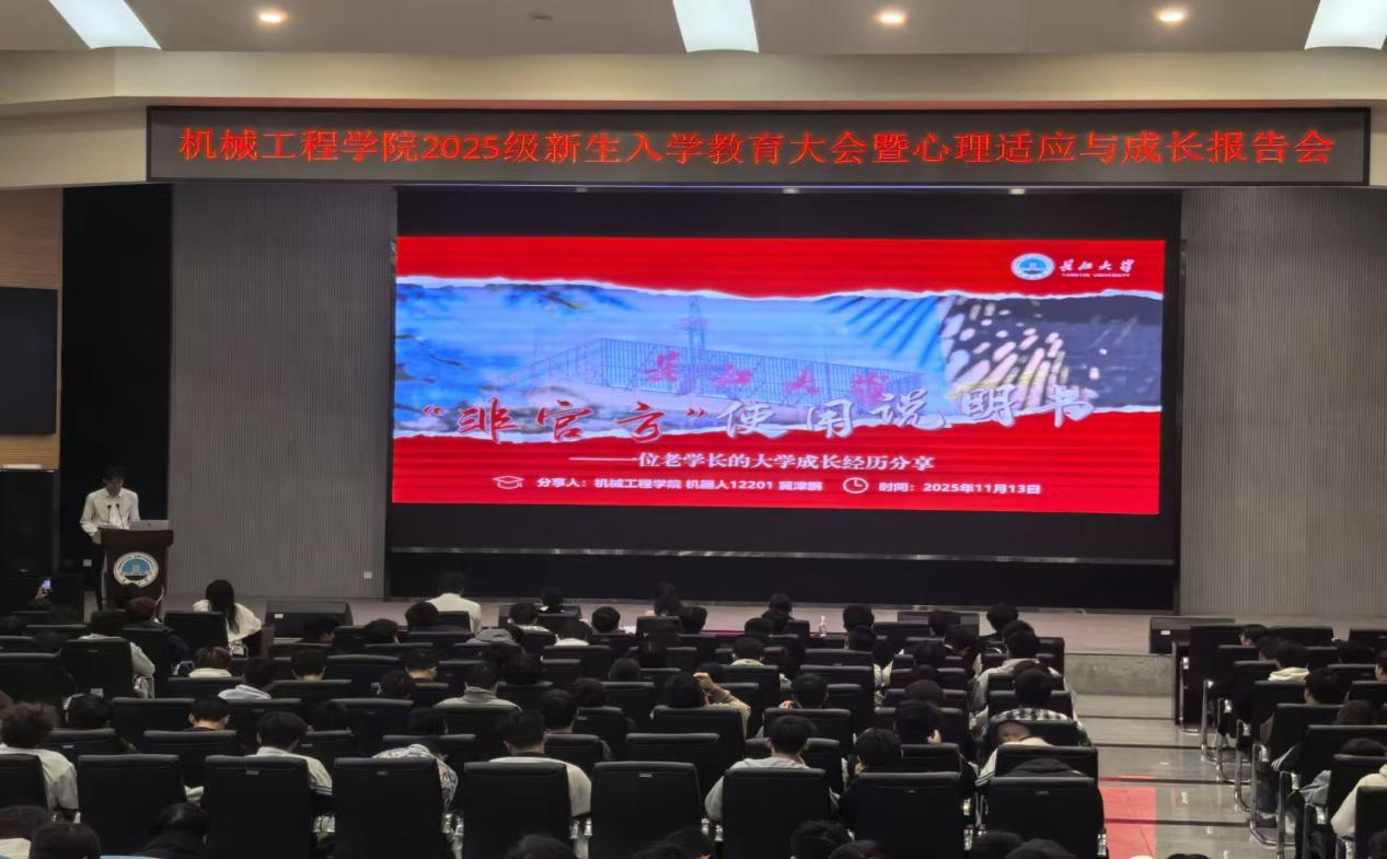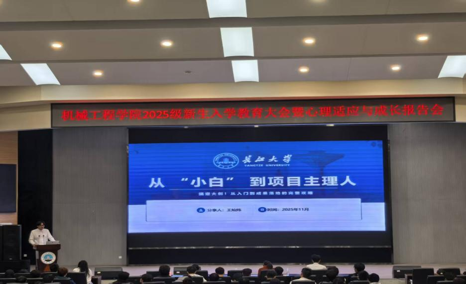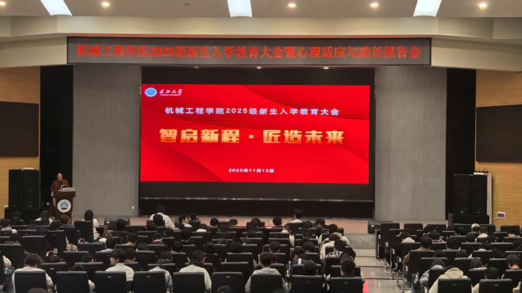 (通讯员 周小乐 欧阳顺欣)2025年11月13日,2025级新生入学教育大会暨心理适应与成长报告会在1058报告厅举行。活动以“智启新程·匠造未来”为主题,党委副书记丁明霞、2025级辅导员周小乐及全体新生参会。
