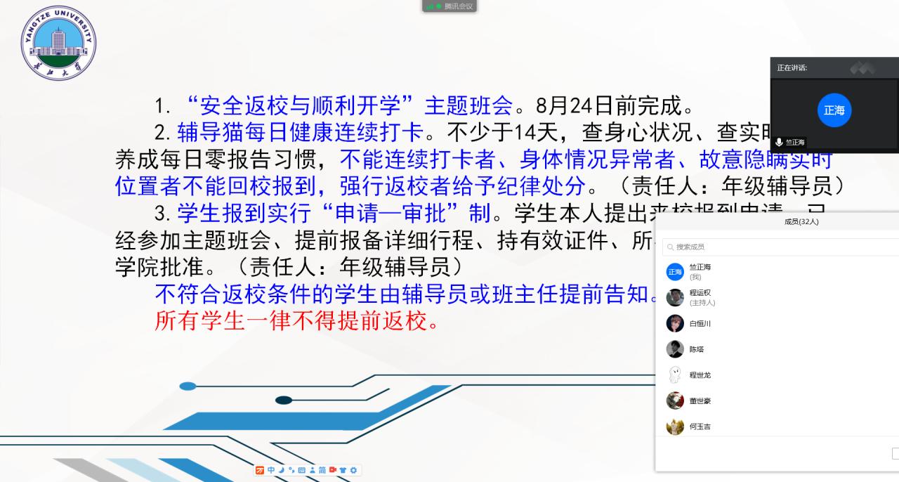 据悉,公司高度重视秋季开学返校工作,制定了详细的秋季开学工作方案。8月21日下午,公司党委副书记竺正海召开全体辅导员班主任专题会议,对2020年秋季开学工作进行布置,并说明近期员工工作相关安排。
