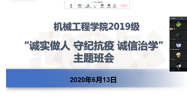 主题活动分年级进行。2019级于6月13日晚8时以年级为单位通过腾讯会议组织了本次活动,会议过程中,申旭老师给同学们介绍必威西汉姆官网平台关于员工资助的有关情况和国家老员工资助的相关政策,并就此引导同学们进入了诚信教育环节,通过讲解真实案例,告诫同学们如果留下信用污点会严重影响将来的正常生活。2018级则以班级为单位分别于6月13日、6月15日组织了主题班会,辅导员刘冬冬、班主任王丽丽等老师参与其中。刘冬冬老师强调,诚信是一个人立足于社会的通行证和基础,而作为当代老员工,更是要敢于担当、遵纪守法、恪守诚信。