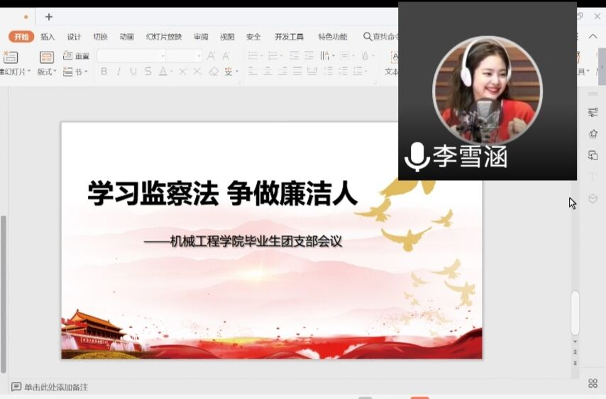 如何在2020届毕业生落实"学习监察法,争做廉洁人"主题活动?团会上,团委副书记李雪涵对"学习监察法,争做廉洁人"活动进行详细布置,要求各班学习围绕制定监察法的重要意义、监察法草案起草过程指导思想和基本思路及监察法草案的主要内容等方面进行学习。会后,各班团支书组织本班同学线上学习,并将学习效果报公司备案。向如老师强调此项活动非常重要,他要求大家尽快落实各团支部的学习监察法活动,确保本次学习的参与率和学习效果。