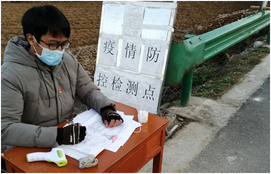 一张小方桌,两只体温测量器,三把椅子……看似单调无聊的工作,实际做起来却并不能有半点马虎。每当村民和车辆到来时,他总是第一个上前询问,悉心劝说,十分关心乡亲们的身体健康。即使夜幕时分泛着阵阵的寒意,值勤人员的手已经冻僵,他也一直坚持到晚上24点才换岗。日复一日,他每天坚持与同村干部等人一起守在入村卡点,一丝不苟地对待每一项工作,一遍遍不厌其烦地为来往人员测量体温、仔细排查并宣传防疫知识,尽全力做好人员排查的登记员、防疫知识的宣传员、严防死守的守门员,为家乡把好疫情防控关口,他用自己的实际行动,为群众的健康平安保驾护航。