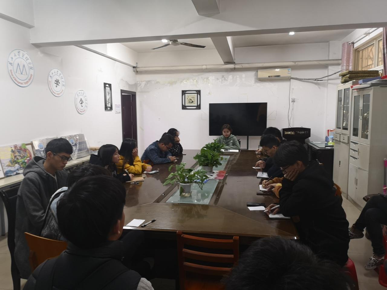 2019年11月21日中午12时10分,2019年11月团日活动于学工办会议室顺利召开。本次团日活动由团副李雪涵主持,17、18级全体团支书参加活动。