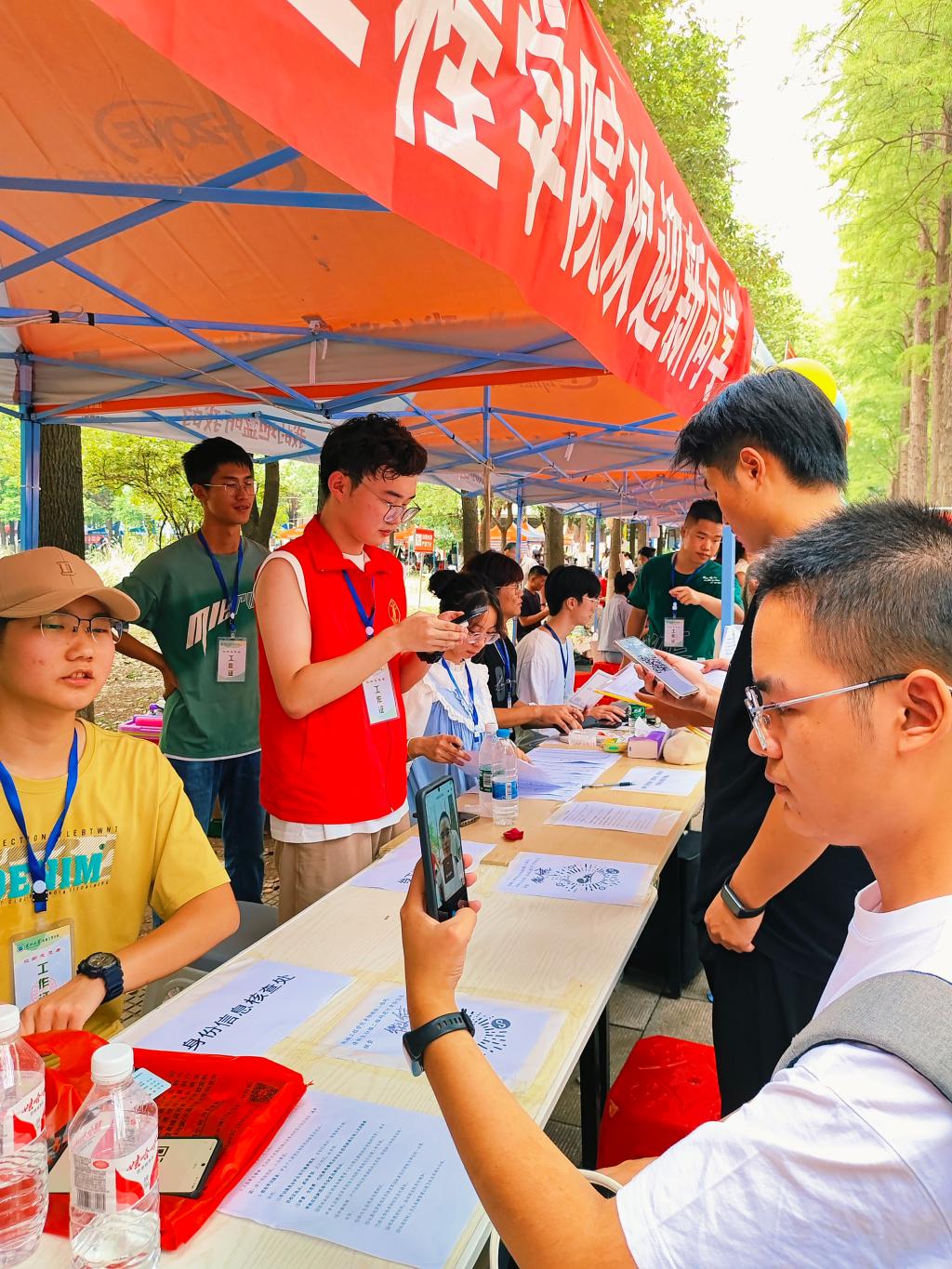 迎新现场,一幅幅温馨而忙碌的画面跃然眼前。在公司精心布置的迎新点,新生辅导员李港老师组织迎新志愿者帮助新生搬运行李,迎接每一位初来乍到的学子。随着新生们通过手机扫码顺利完成线上报到,学长学姐们迅速递上满载关怀的新生大礼包,带领他们到达温馨的宿舍。同时,志愿者们还细心指引新生前往体育场领取军训服。新生辅导员全天在现场布置、迎接、答疑,确保迎新工作有条不紊地进行。