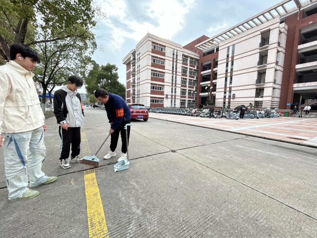 校园道路上,同学们三两成群,沿着片区内主干道、人行道仔细巡查,扫起遗落的烟头、纸屑、包装袋等垃圾,手中的垃圾袋逐渐装满。其间,大家还不时向过往师生宣传爱护校园环境的理念,倡导文明行为。