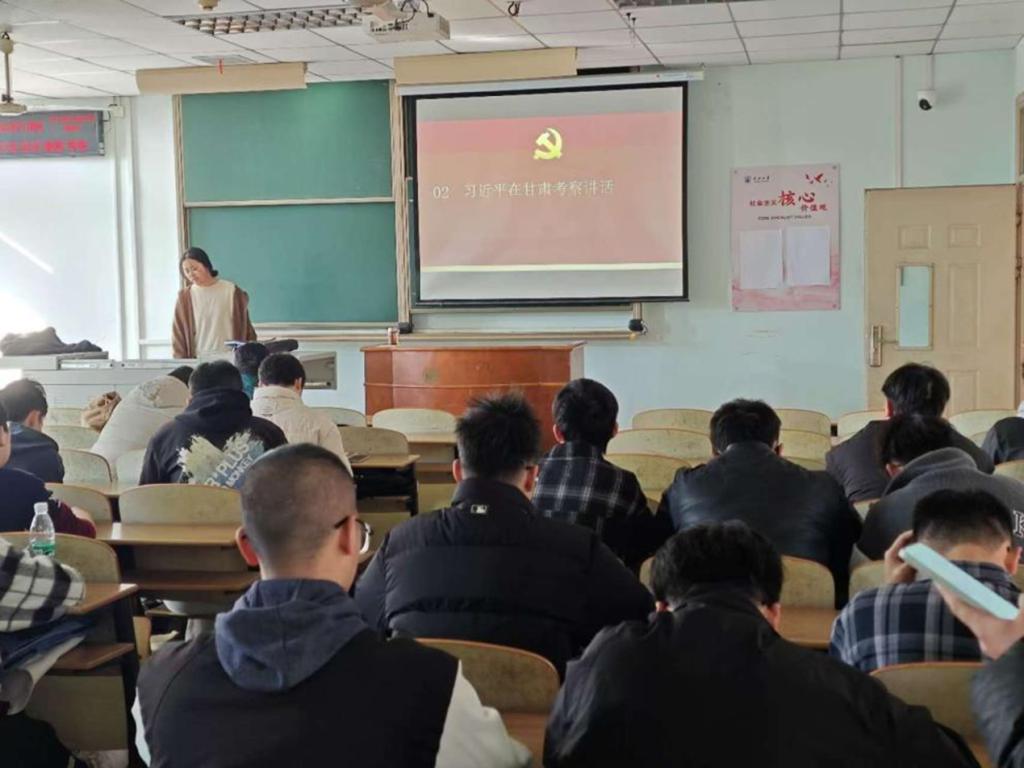 在领学人向琼垚的带领下,参会人员学习习近平总书记在甘肃考察期间的讲话。习近平总书记在对生态保护、绿色发展、乡村振兴、民生保障及民族团结等方面的工作部署不仅彰显了党中央对文化建设的高度重视,也为研究生们提供了宝贵的实践指南。
